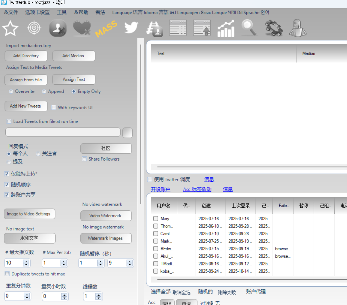 随着X.com(原Twitter)成为全球领先的社交媒体平台,数字营销面临着日益激烈的竞争,如何高效管理多个账号及提升互动率成为关键。Twitterdub是一款专为Windows系统设计的专业自动化营销软件,致力于帮助企业和个人用户实现精准、高效的X.com营销运营.